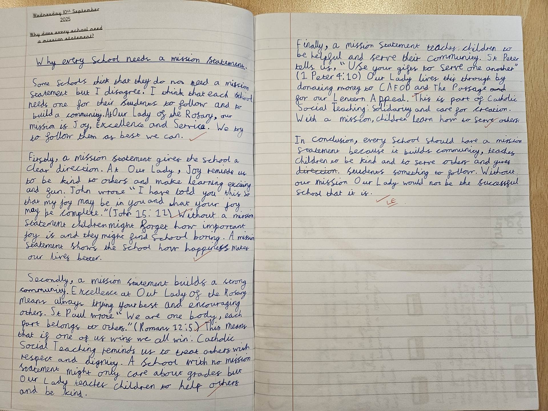 At Our Lady of the Rosary, we recognise each child’s God-given talents and equip them with the knowledge, skills and confidence to reach their full potential in all areas of the curriculum. Our children are encouraged to be confident and resilient learners, with enquiring minds and positive attitudes, in order to rise to the challenges they will encounter, within the school, the community and beyond. We aim to instil a sense of aspiration in the children through positive attitudes and high expectations alongside the highest standard of teaching with staff who continually develop their knowledge to ensure the best possible education for all our children.