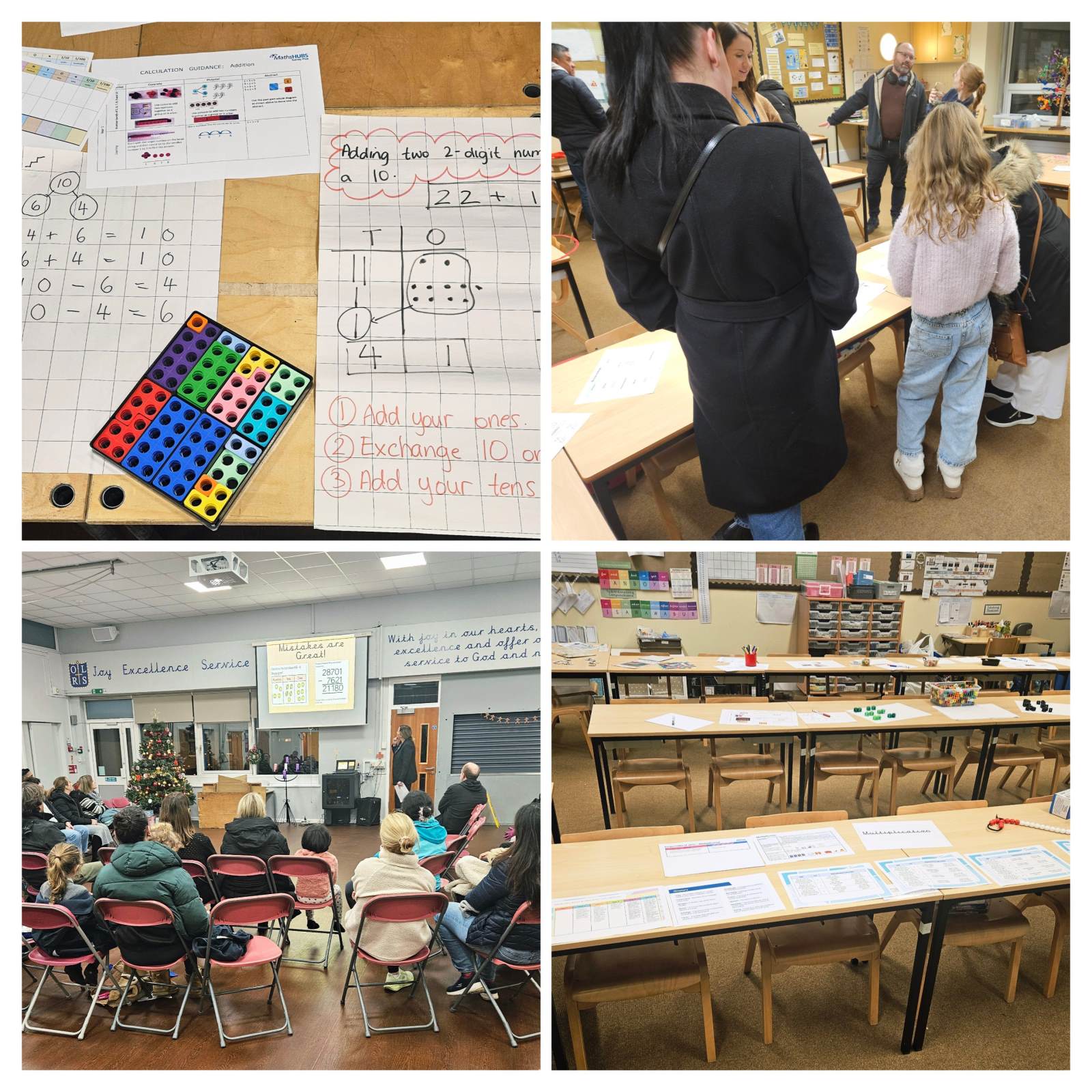 We hosted an evening maths workshop for parents and carers from Nursery to Year 6. The session explored the approaches used across the school to teach calculations, reasoning and problem solving, giving families an understanding of how mathematics is developed year on year. Staff demonstrated key classroom strategies, including the use of Numicon, part-whole models, tens frames, and other concrete apparatus that help children secure important concepts before moving on to pictorial and written methods. Parents also had the opportunity to see how these resources support the concrete-pictorial-abstract approach used throughout the school. The workshop was very well received and provided families with practical insight into the methods that help pupils become confident, fluent and flexible mathematicians.