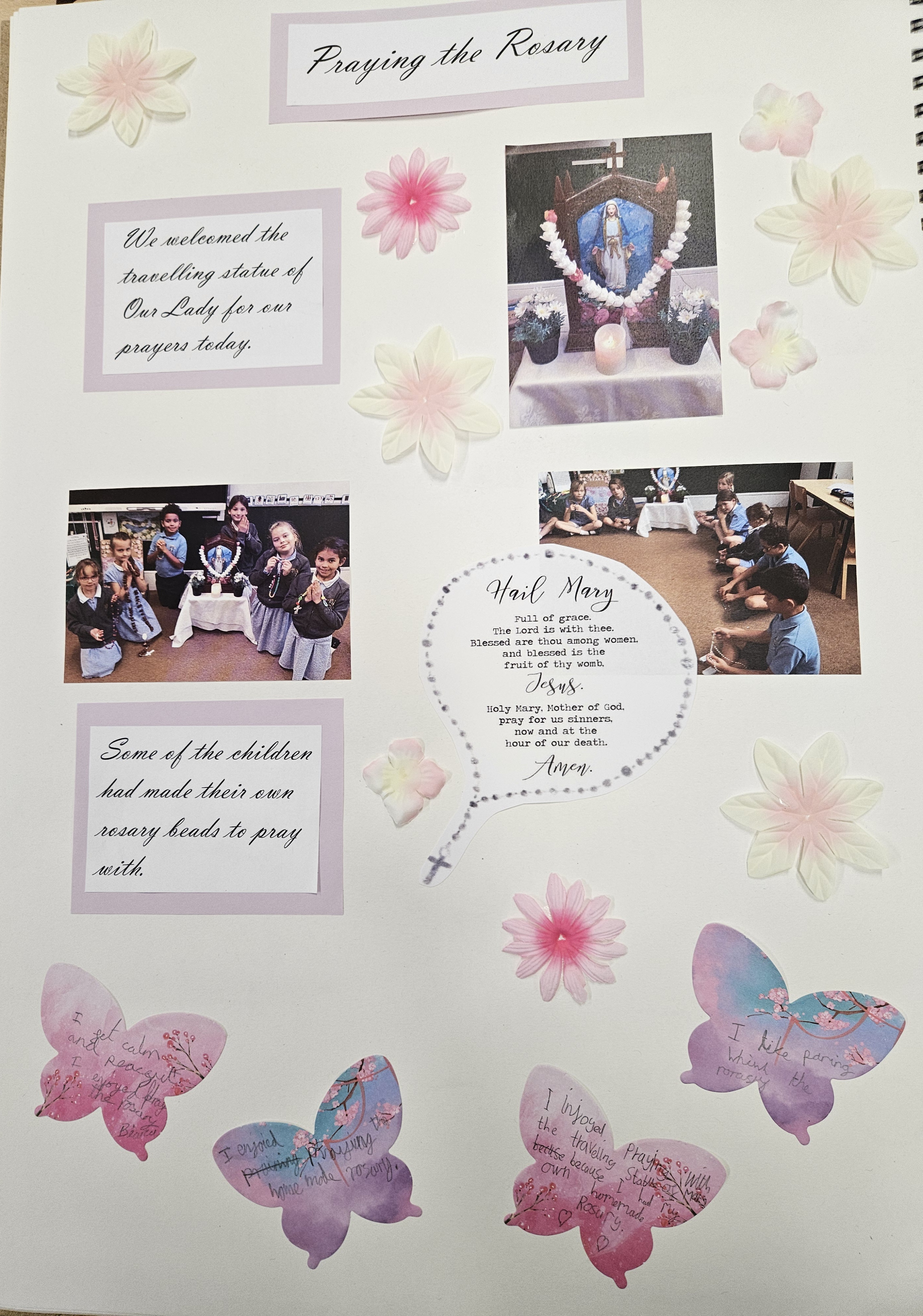Class and Whole-School Rosary Prayers, as part of class prayer times during the year and with special significance in October and May.