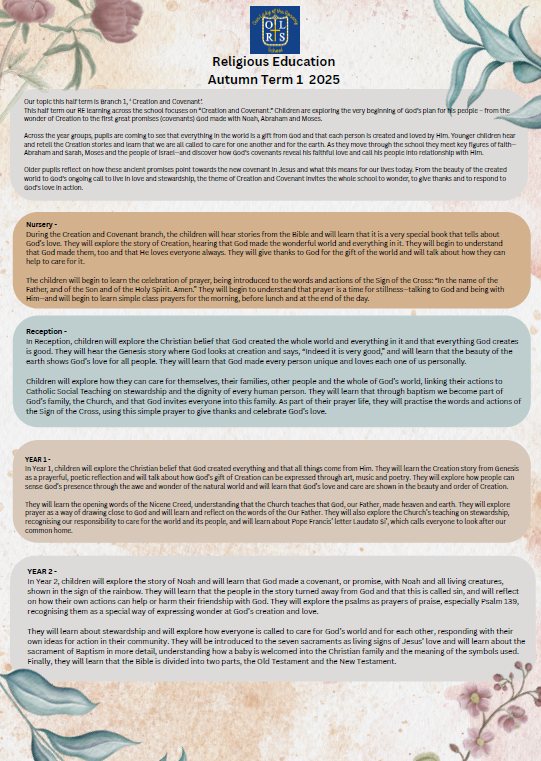 Curriculum highlights – an overview of what each year group is learning in Religious Education this term.