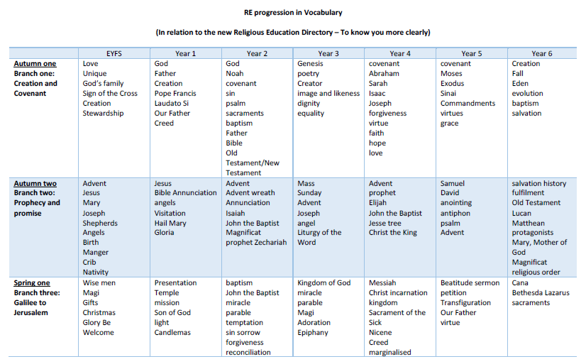 Progression of Vocabulary in the Religious Education DIrectory