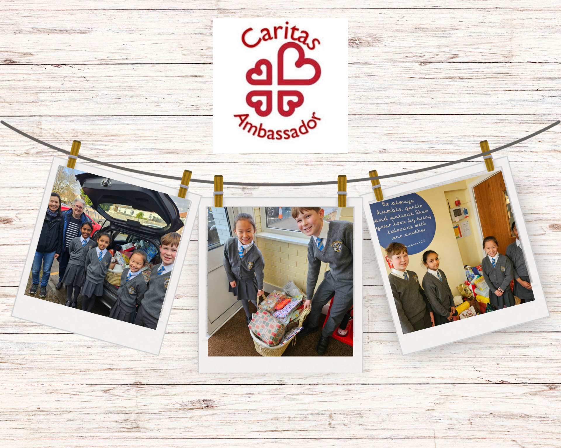 The Caritas Ambassadors carefully organised all of the gifts brought in as acts of charity for the new-born baby Jesus on The Feast of the Epiphany. They then met with volunteers from Home-Start Spelthorne and Baby Basics to formally hand over the donations, which have now been collected and shared with families in need.