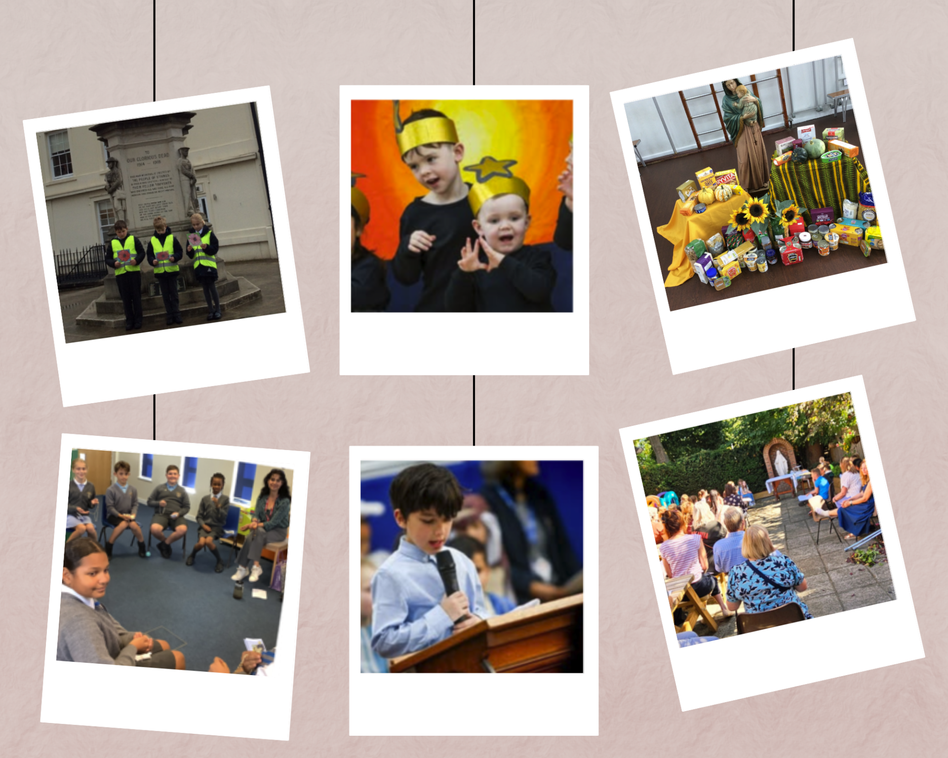 Month of Remembrance: During November we remember all those souls who have gone to Heaven. We have an All Souls Mass, which is offered up for all of the faithful departed. On the 11 November, Year 2 and Year 5 lead us in a Remembrance Assembly. A class from the school attends the Armistice Day ceremony at Staines War Memorial. The rest of the school take part in a two-minute silence on the playground.